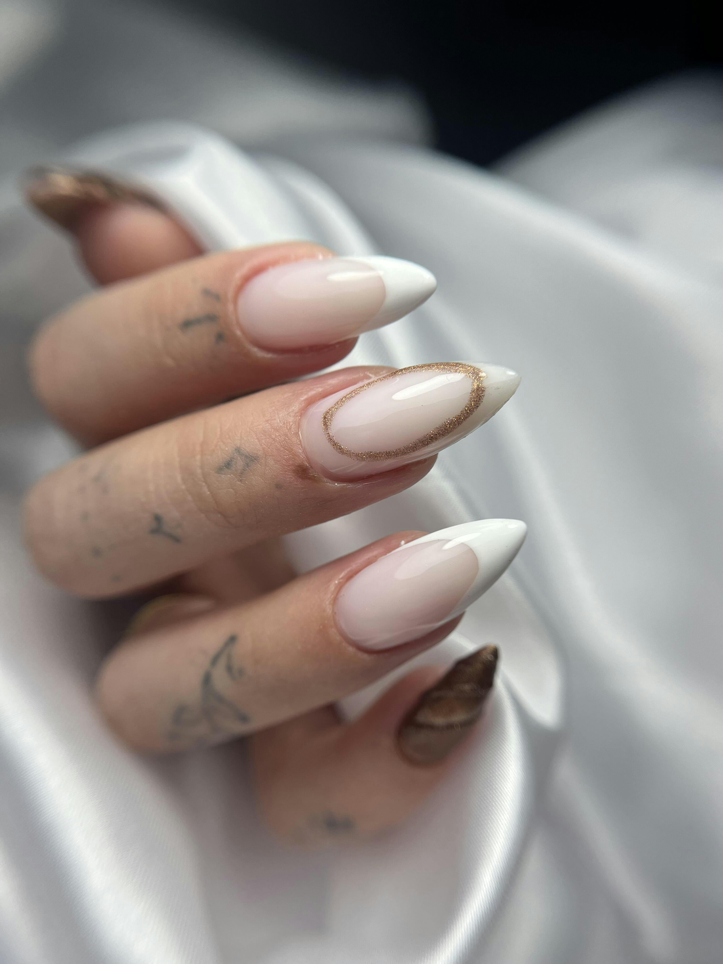 After preparing your nail plate, apply your usual adhesive base coat and cure for 60 seconds. Work with Liquid Gel using the overlay technique: first apply a thin, smoothing layer, then apply a bead of gel to the center of the nail to create the apex. Cure for 60 seconds and apply your preferred top coat.